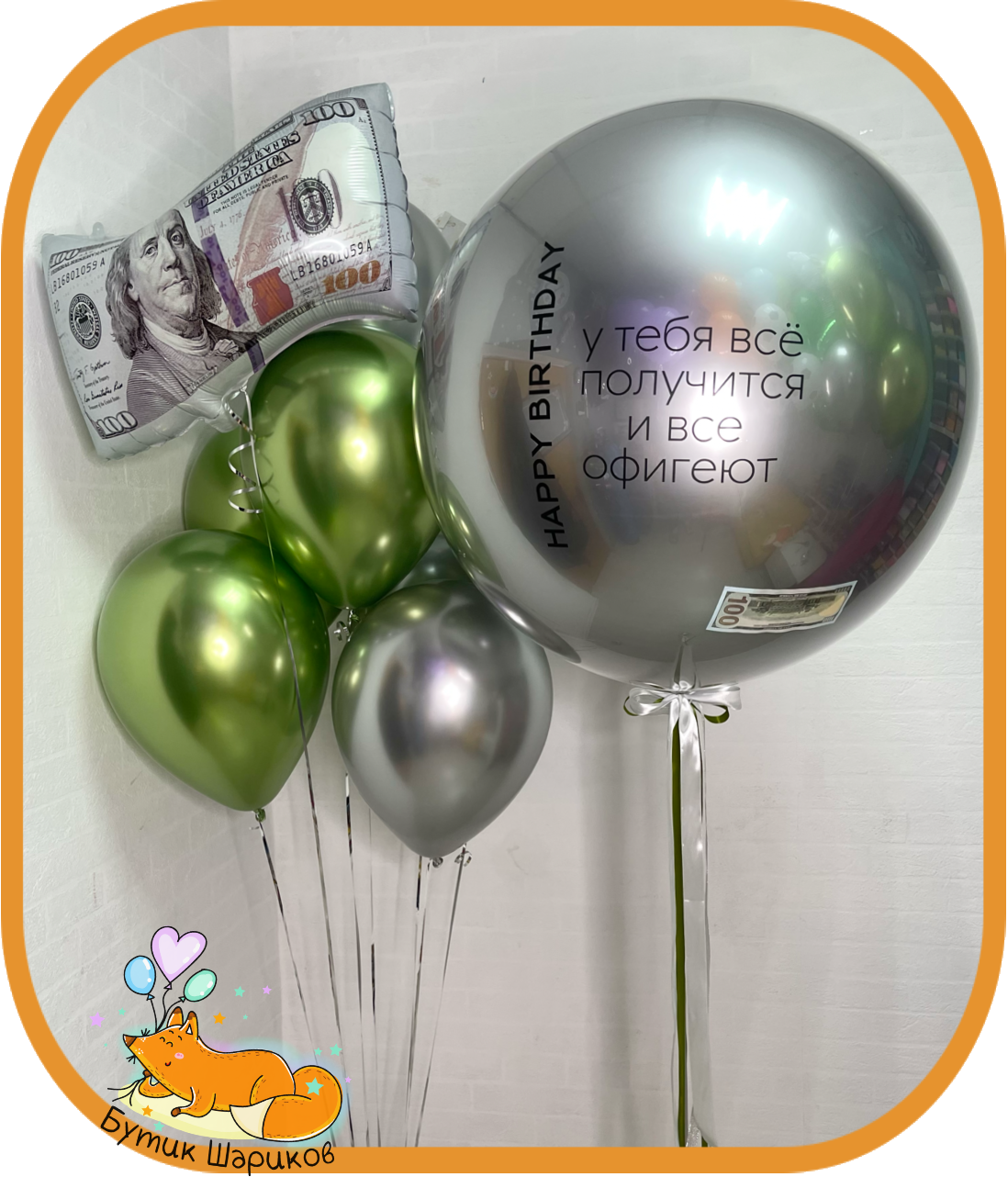 Шарики обработаны специальным составом Koda для долгого полётаДаШарики «Хром»7 штФольгированная фигура1 штБольшой «Зеркальный шар»1 шарикДекор "Индивидуальная надпись"на 1 шарикеГрузик2 штМожно поменять на другие цвета шариковДа -