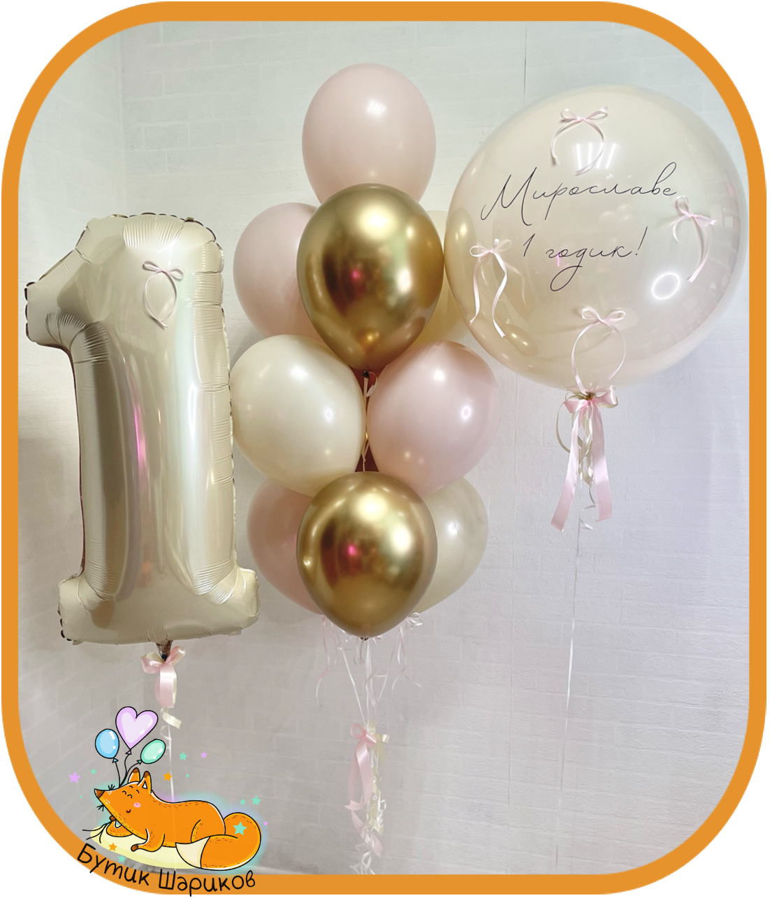 | В наборе: | - 7 шариков "Пастель" нежно-розовый и бежевый - 3 шарика "Хром" золото - Зеркальный шар с бантиками и с индивидуальной надписью - Цифра - 3 грузика *Цвет цифр можно поменять по Вашему желанию |