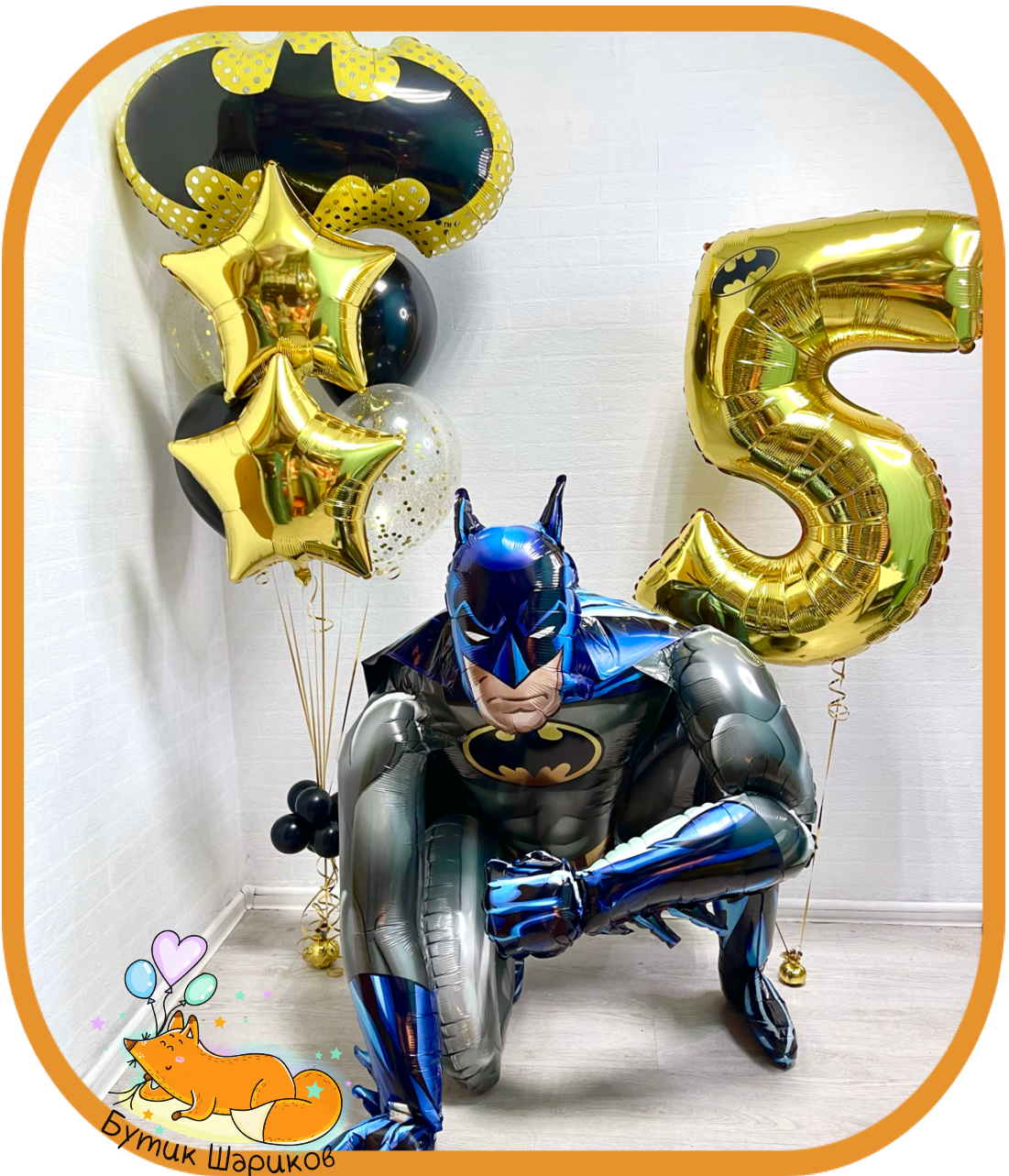| В наборе: | - Фольгированная фигура "Символ Бэтмена" - 2 звезды - 2 чёрных шарика "Пастель" - 2 шарика с конфетти - Цифра - Большая фигура "Бэтмен" напольная, 90 см - 2 грузика |