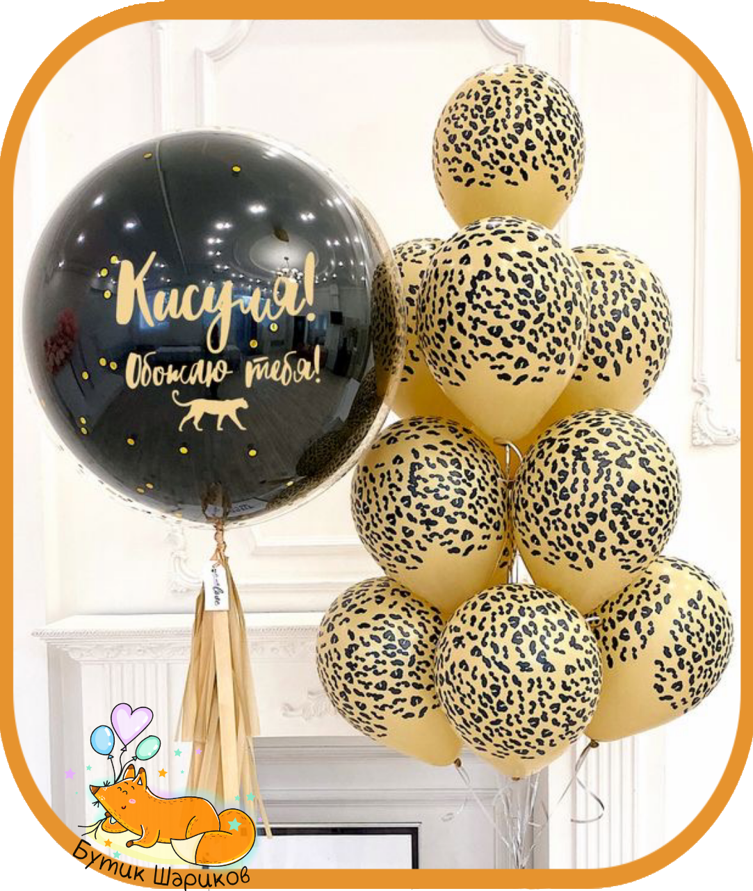 - 12 шариков "Пятна гепарда" - Шар 70 см с индивидуальной надписью - 2 грузика |