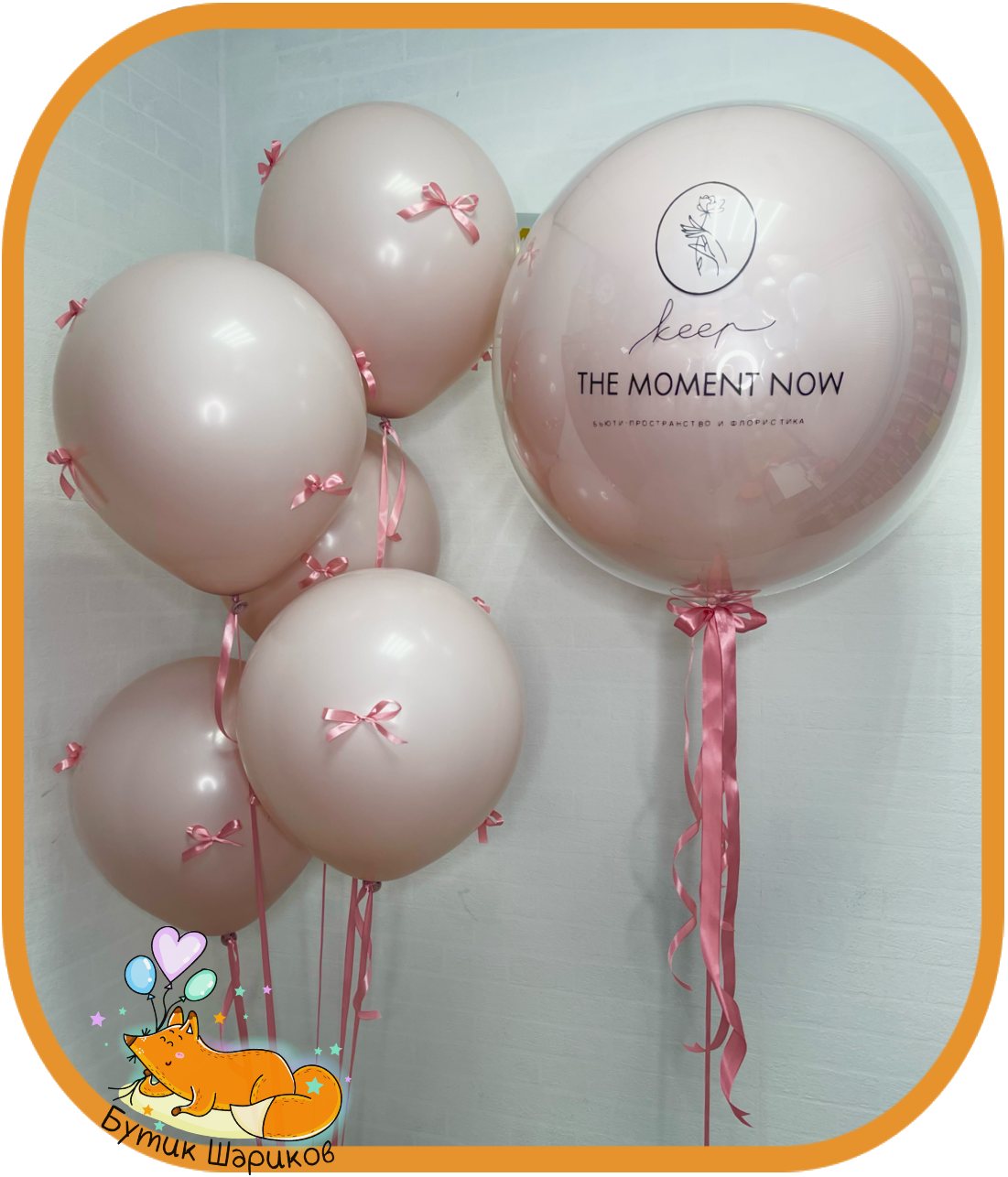- Зеркальный шар с индивидуальной надписью - 5 шариков "Пастель" 45 см пыльно-розового цвета с бантиками - 2 грузика |