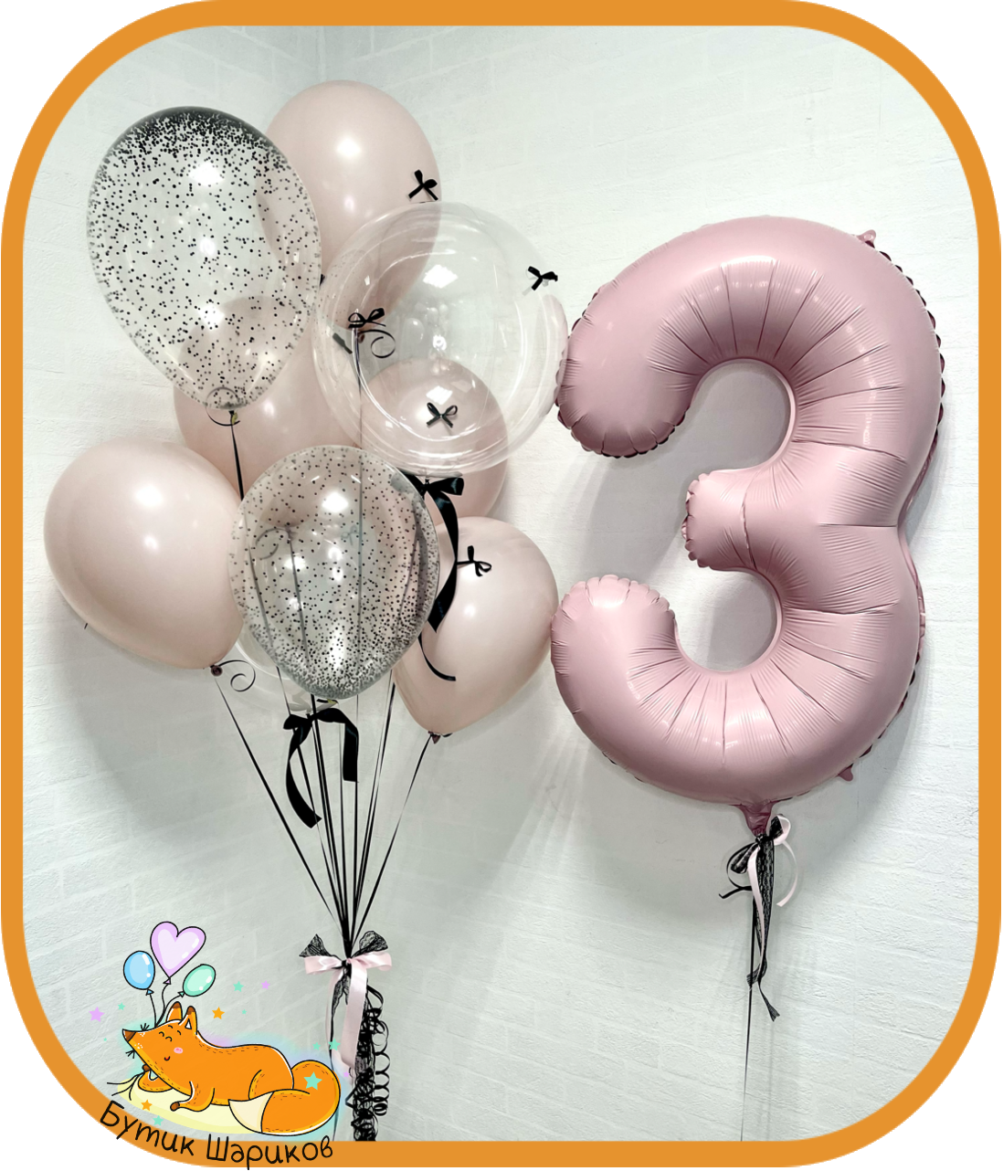 | В наборе: | - Цифра - 5 шариков "Пастель" пыльно-розовые с чёрными бантиками - 2 прозрачных шарика с черным конфетти - 2 баблс с чёрными бантиками - 2 грузика |