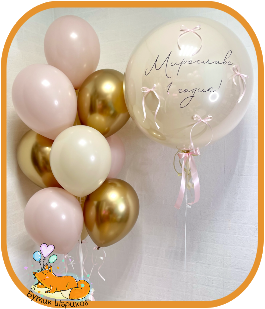 | В наборе: | - 7 шариков "Пастель" нежно-розовый и бежевый - 3 шарика "Хром" золото - Зеркальный шар с бантиками и с индивидуальной надписью - 2 грузика *Цвет цифр можно поменять по Вашему желанию |