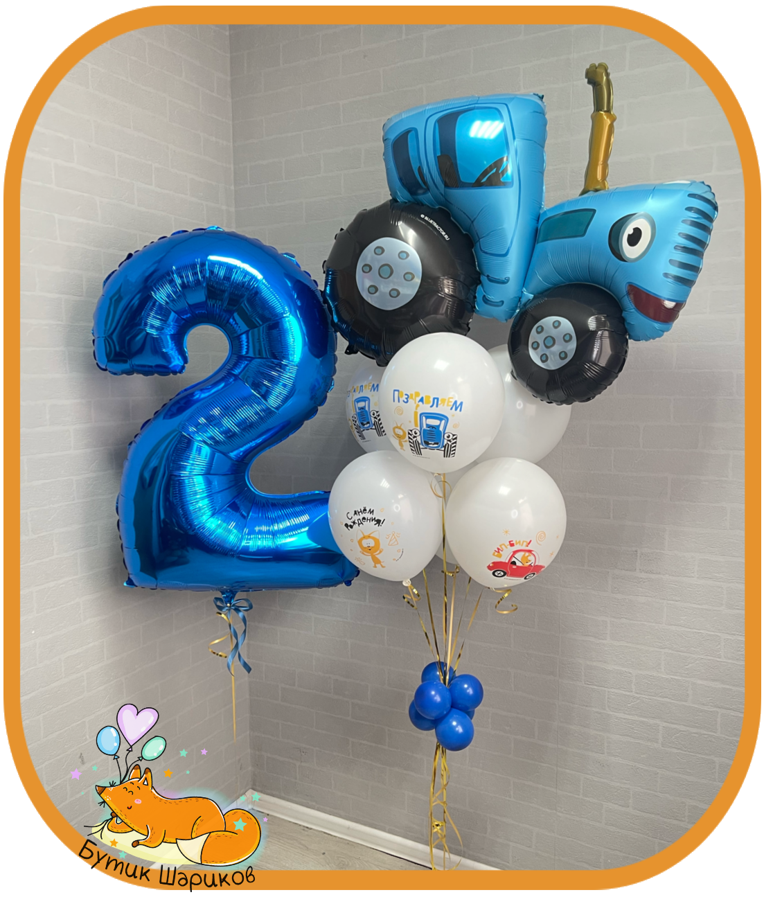 - 6 шариков "Синий трактор" - Шарик фольгированный "Синий трактор" - Цифра - 2 грузика |